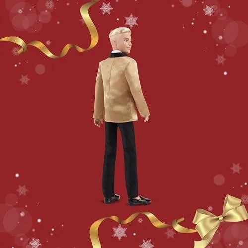 Zaprojektowany tak, aby uzupełniać złote tony lśniącej sukni świątecznej lalki Barbie, Ken jest idealnym uzupełnieniem corocznej tradycji – i pozycją obowiązkową dla kolekcjonerów poszukujących odrobiny dodatkowej radości w te święta.