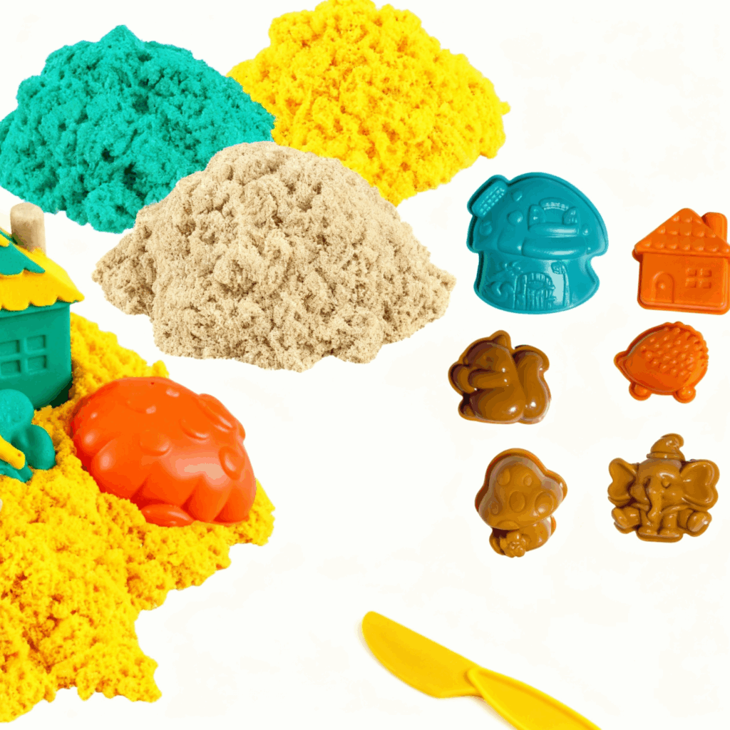 Stwórz kolorowy świat zwierzątek i domków z tym kreatywnym zestawem do zabawy z piaskiem!