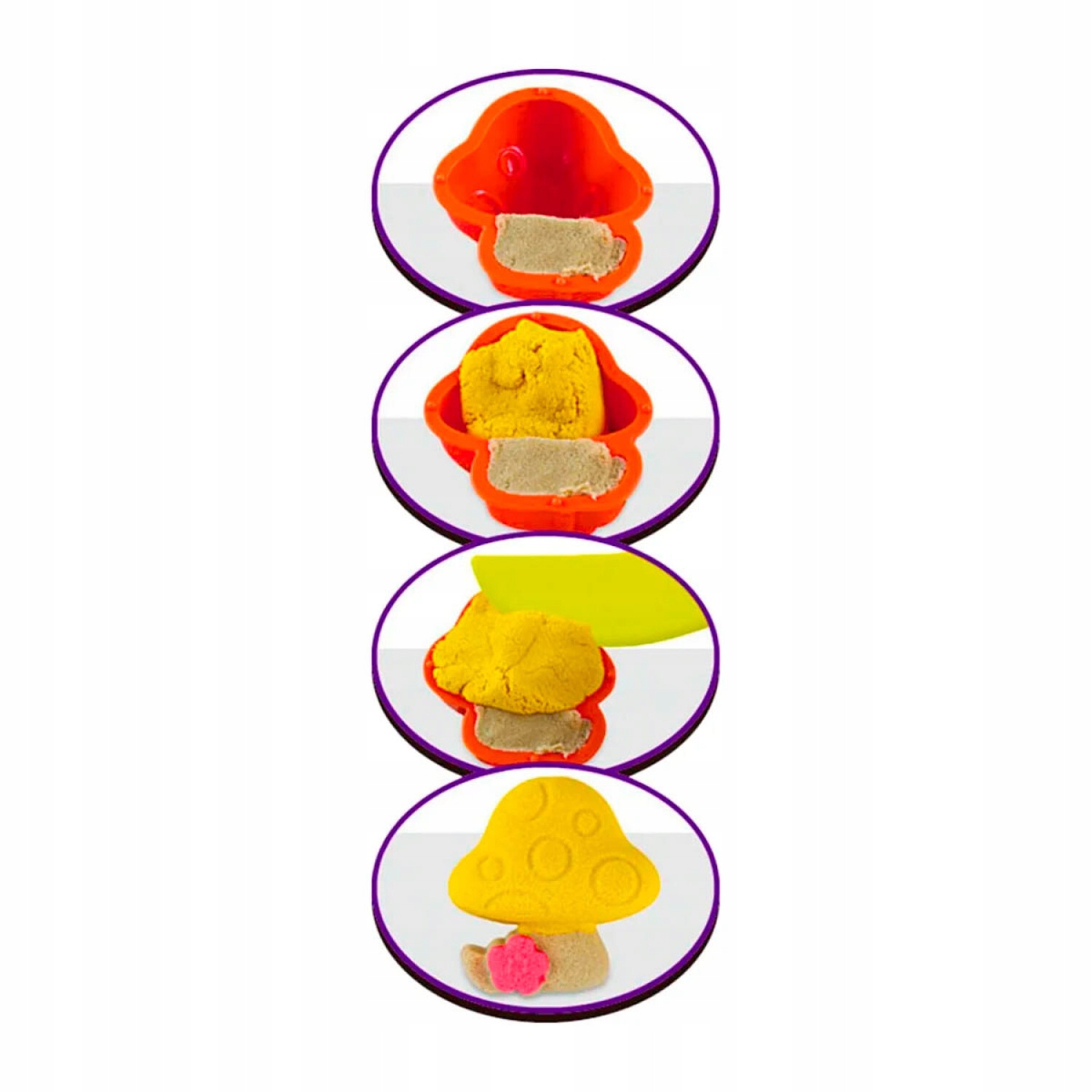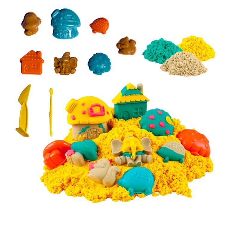 Zestaw do zabawy z piaskiem kinetycznym – 750 g + foremki + akcesoria + tacka
