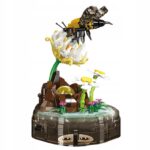- Urocza pszczoła: model unosi się nad kwiatkiem otoczonym zielenią.