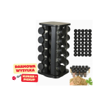 Zestaw – Obrotowy stojak kwadratowy, metalowy, czarny + 20x słoiczków na przyprawy + 40x naklejek