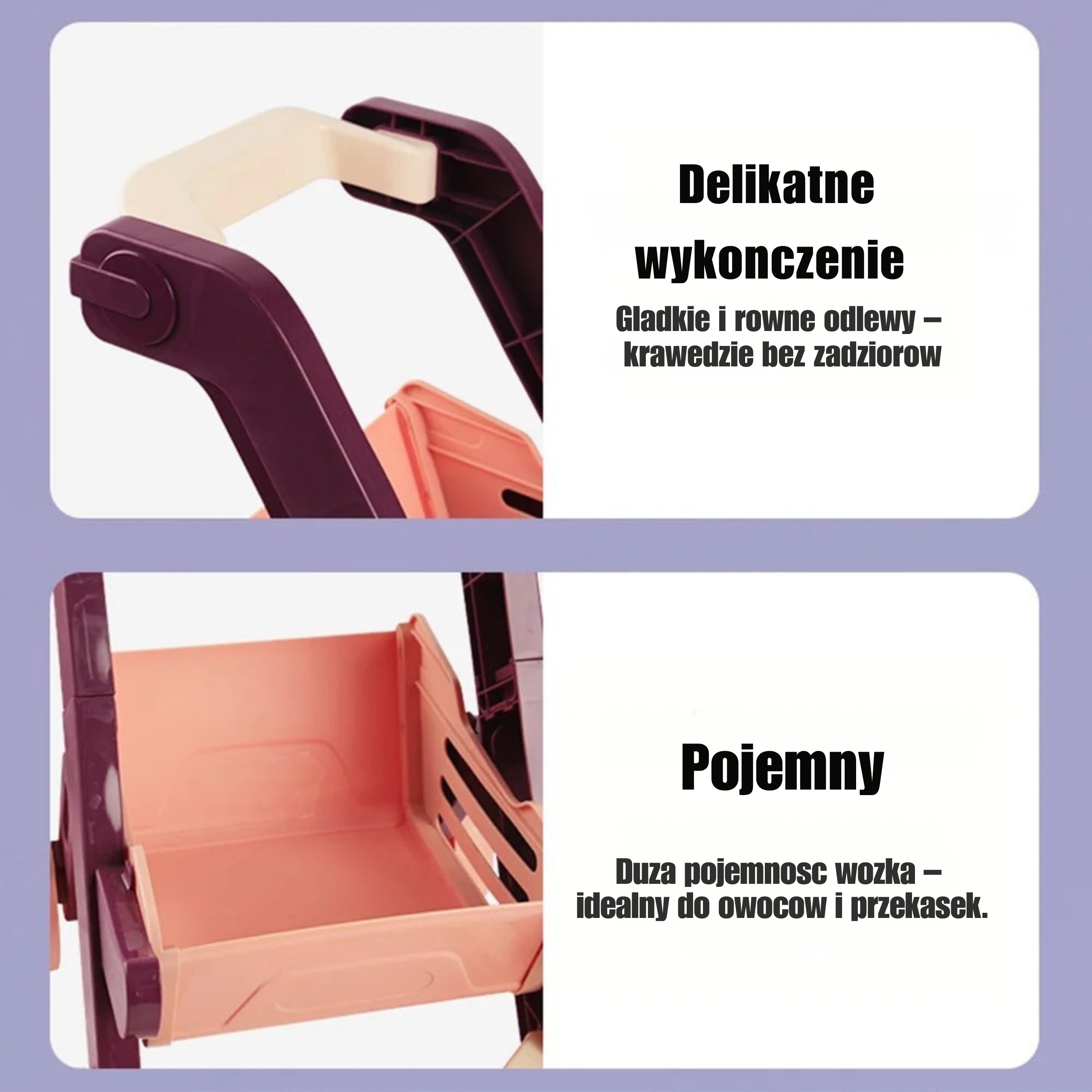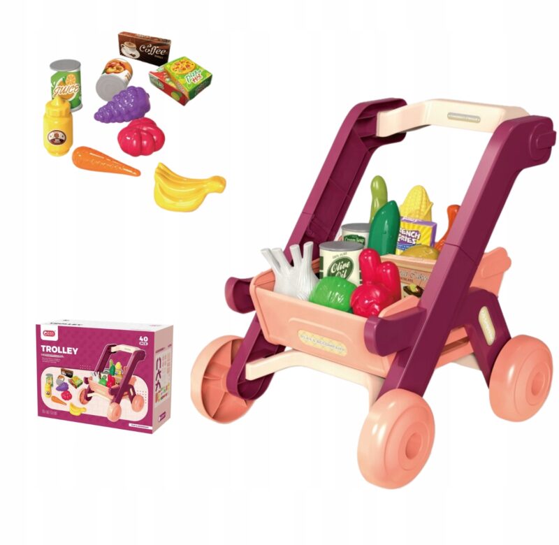 ✅ Bogaty zestaw – aż 43 elementów: wózek, owoce, warzywa, puszki, napoje i inne akcesoria