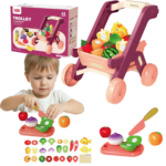 🚗 Wózek sklepowy na kółkach – ok. 28 × 24,5 × 29,5 cm, idealny rozmiarem dla dzieci w wieku 3–6 lat. Lekki, stabilny i wygodny w prowadzeniu.